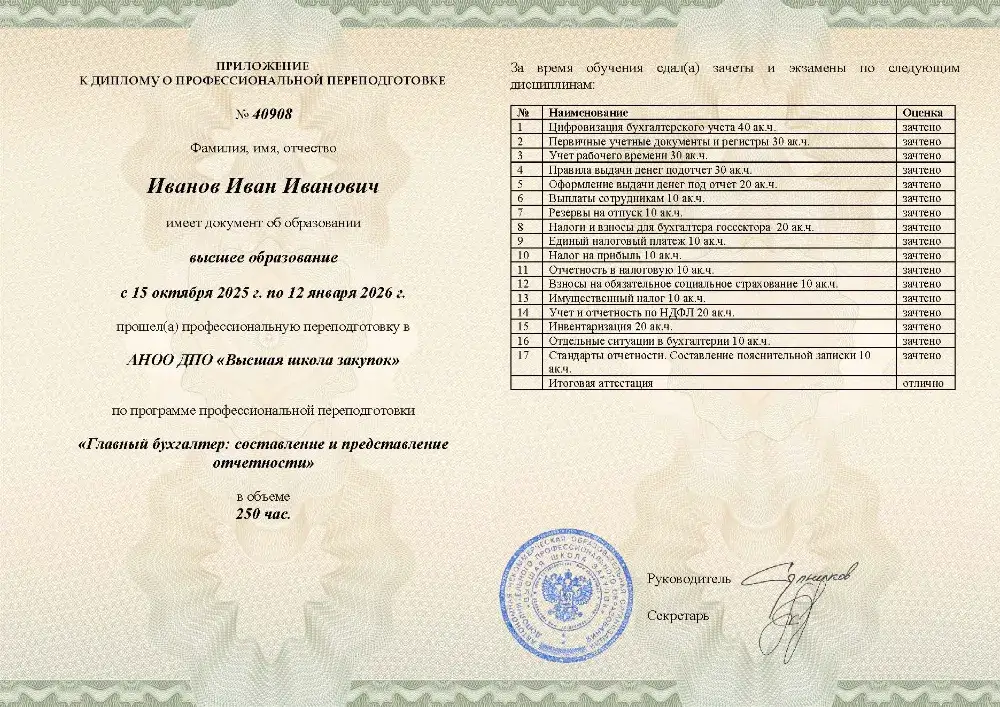 Это полноценная образовательная программа для получения дополнительной квалификации и освоения новой профессии. Для поступления также требуется высшее или среднее профессиональное образование (СПО). Итоговым документом является полноценный диплом о профессиональной переподготовке, который ценится на рынке труда. Программы являются наиболее объемными и начинаются от 250 академических часов, что обеспечивает глубокое погружение в специальность.