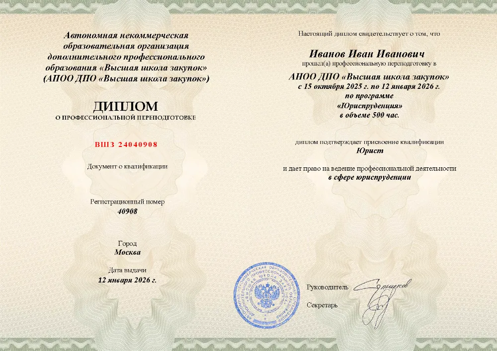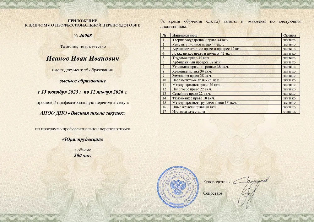 Профессиональная переподготовка, 500 академических часов, 16 модулей: теория государства и права, конституционное, гражданское, уголовное и трудовое право, арбитражный и административный процесс, налоговое, земельное, таможенное и международное право. Онлайн-обучение в в Иваново с итоговой аттестацией.