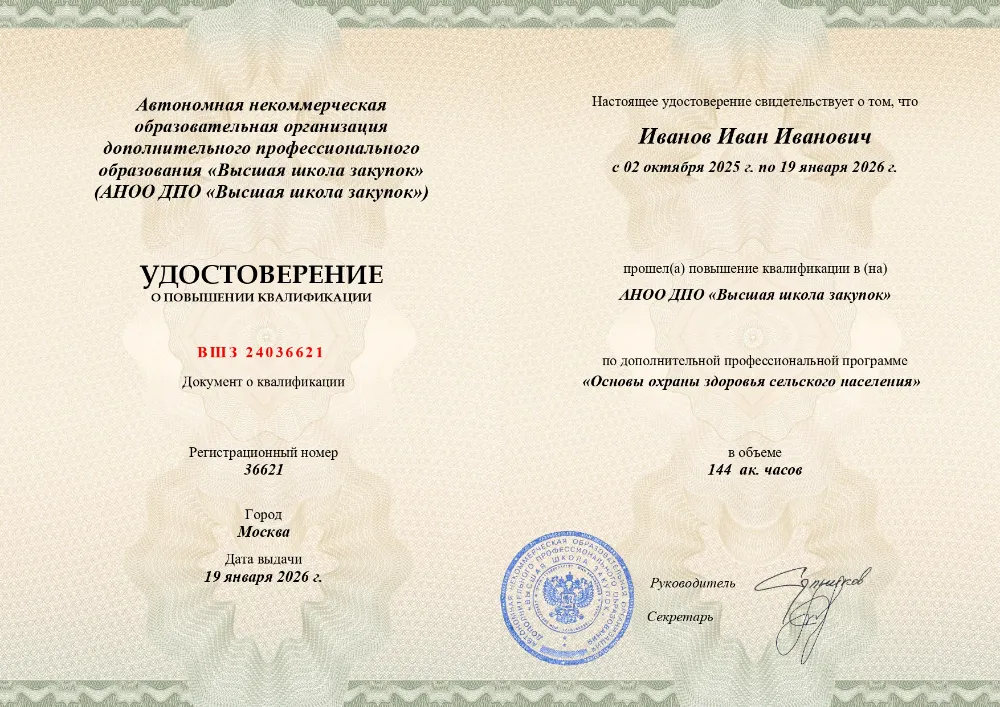 Курс повышения квалификации (144 часа) по основам охраны здоровья в сельской местности. Изучите правовые, организационные и экономические аспекты сельского здравоохранения, санитарно-эпидемиологическое обеспечение и управление качеством медицинской помощи. Онлайн-обучение в в Иваново с итоговой аттестацией.