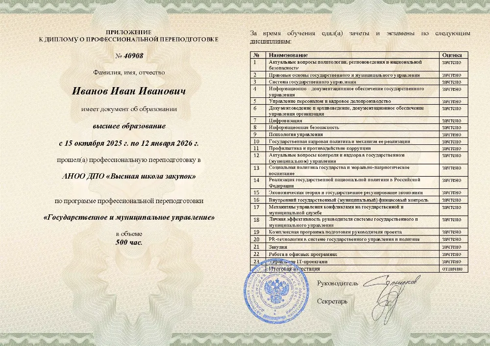 Профессиональная переподготовка, 500 академических часов, 25 модулей: правовые основы и система государственного управления, управление персоналом, финансами и противодействие коррупции, социальная политика и экономическое регулирование, цифровизация, закупки и информационная безопасность. Онлайн-обучение в в Иваново с итоговой аттестацией.